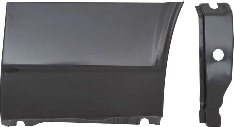 A correctly stamped front fender patch panel which installs at the rear lower fender area of 1967-68 coupe and convertible models. Each panel will replace the rear lower section of this commonly rusted rear area. The panel is approximately 12 " tall. Includes the lower rear inner bracing piece. Each panel comes complete with EDP coating for rust resistance.