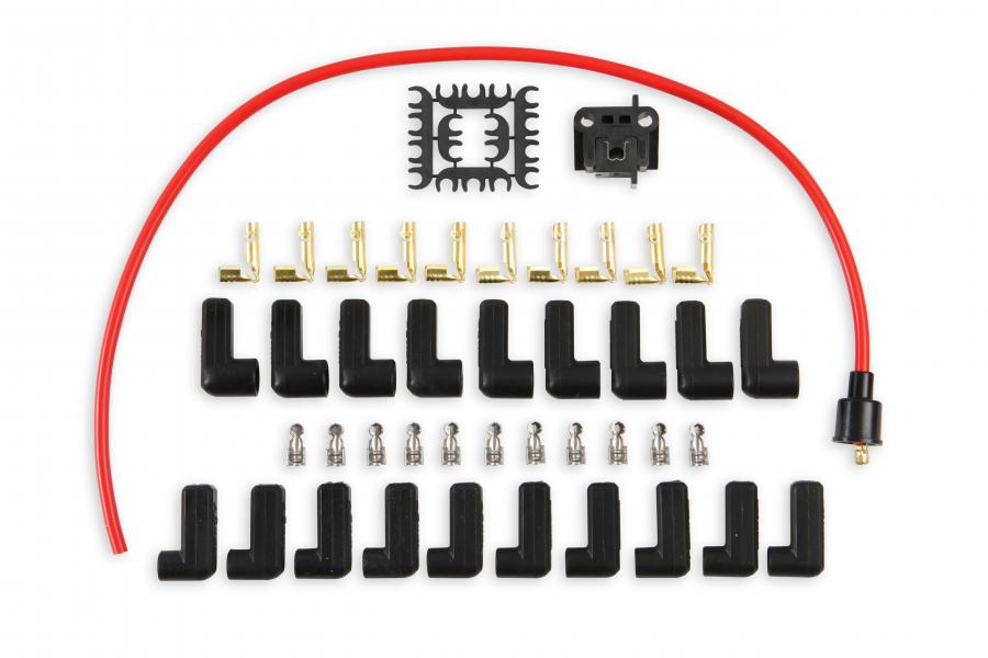 UNIVERSAL FIT SPARK PLUG WIRE SET; RED; 8MM; SPIRAL CORE; 500 OHMS PER FOOT OF RESISTANCE; 90 DEG. BOOTS; FOR USE W/PRE AND POST HEI VEHICLES;