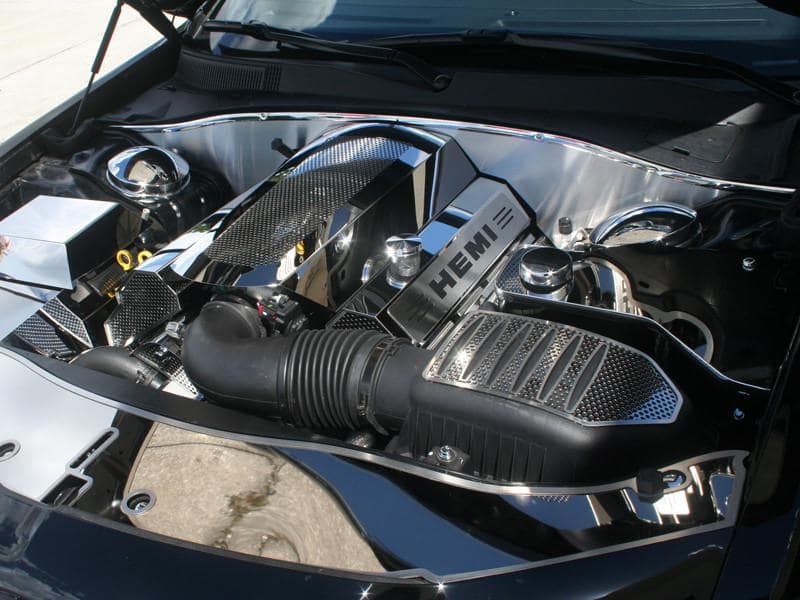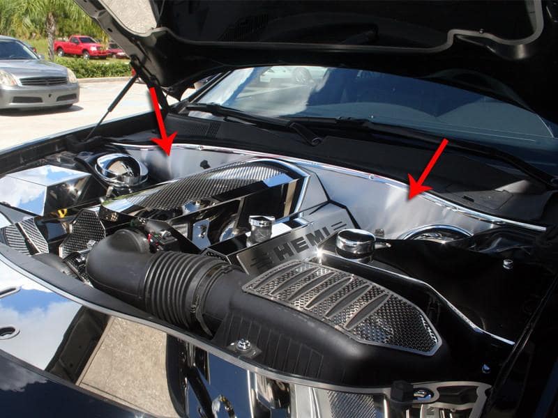 Dress up your Dodge Charger / Chrysler 300 with our polished or brushed finish Stainless Steel False Firewall. Our False Firewall is designed to fit the 2009-2018 5.7L Chargers and Chrysler 300 with our Plenum Cover and Fuel Rail Covers only giving you that custom look for your Charger or 300. (Brushed shown) Compliments our 5.7L Fuel Rail Covers - 333013.