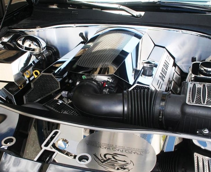 Our product line specialty extends from the interior to the exterior of your ride and into the engine bay. We also create state of the art vinyl decals and can create one of a kind custom etched windows and laser etched stainless steel products.