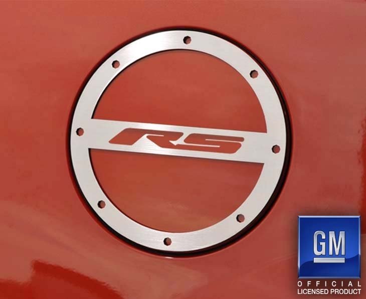 Dress up your Camaro with our brushed stainless steel Camaro RS Fuel Door Cover. These trim pieces are designed to fit over the stock gas door. Installs like a sticker, lasts a lifetime.