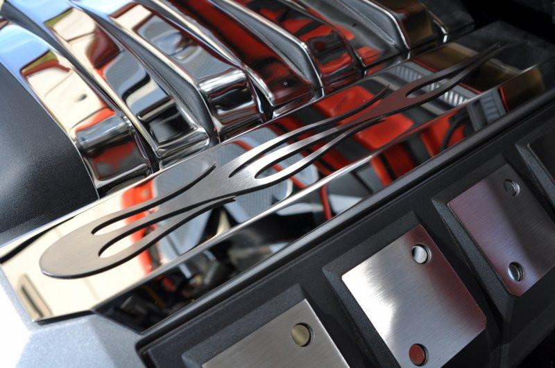 Our product line specialty extends from the interior to the exterior of your ride and into the engine bay. We also create state of the art vinyl decals and can create one of a kind custom etched windows and laser etched stainless steel products.