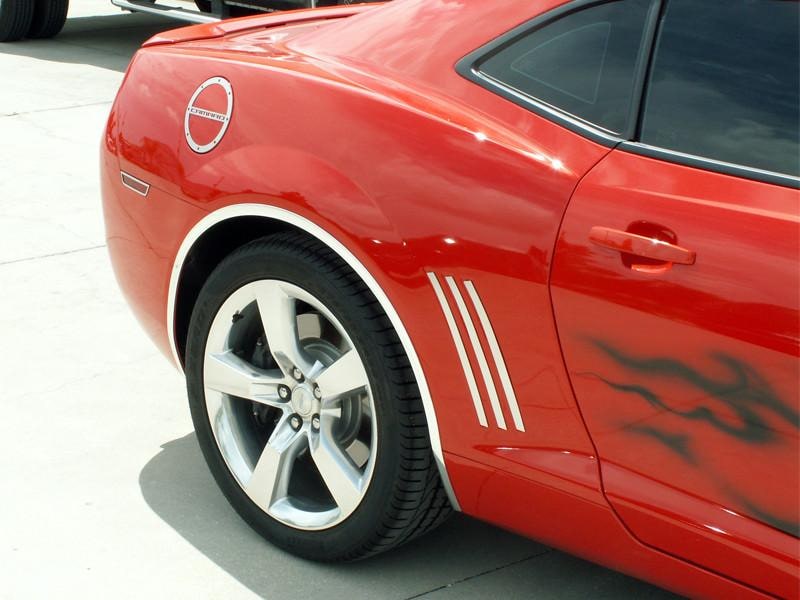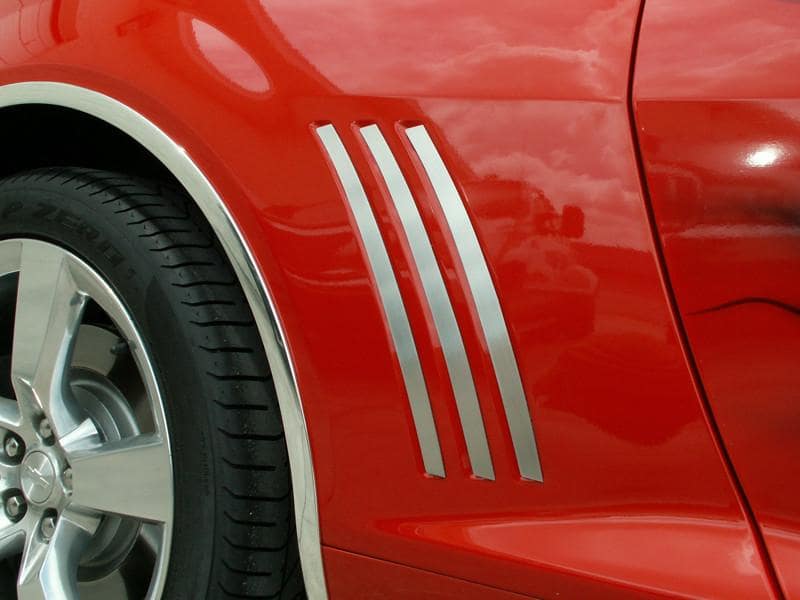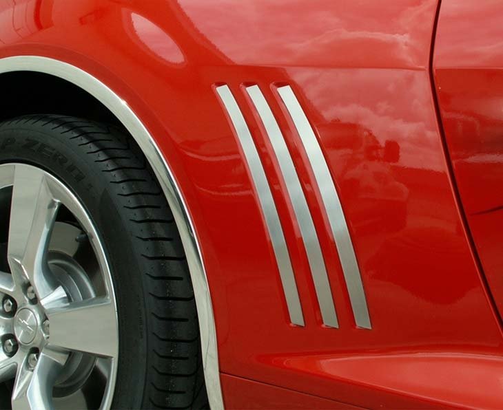 Dress up your Chevrolet Camaro with our brushed stainless steel Rear Quarter Panel Trim Kit. These trim pieces are designed to fit in the rear quarter panel slot's and add a clean stylish look to your Camaro exterior.