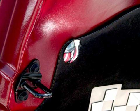 Dress up your Corvette with our Chrome - Trunk Lid Liner Fastener Covers. These trim pieces are designed to fit over the stock black trunk lid liner fasteners and add a clean stylish look to your Corvette. Compliments our C6 Rear View…