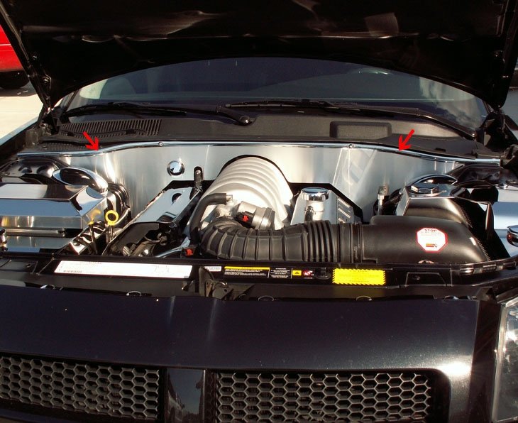 Dress up your 2005-2010 5.7L HEMI SRT 8 engine bay with our brushed stainless steel False Firewall. These trim pieces are designed to fit the 2005-2010 300C, Charger, and Magnum Firewall with 5.7L HEMI engine and adds a clean stylish look to your car engine bay. Compliments our Polished Engine Shroud Dress Up Kit - 303001.