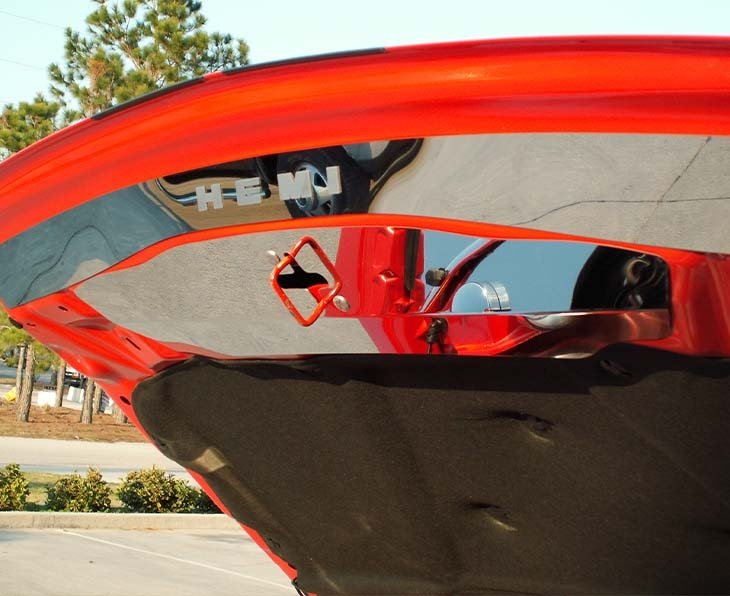 Our product line specialty extends from the interior to the exterior of your ride and into the engine bay. We also create state of the art vinyl decals and can create one of a kind custom etched windows and laser etched stainless steel products.