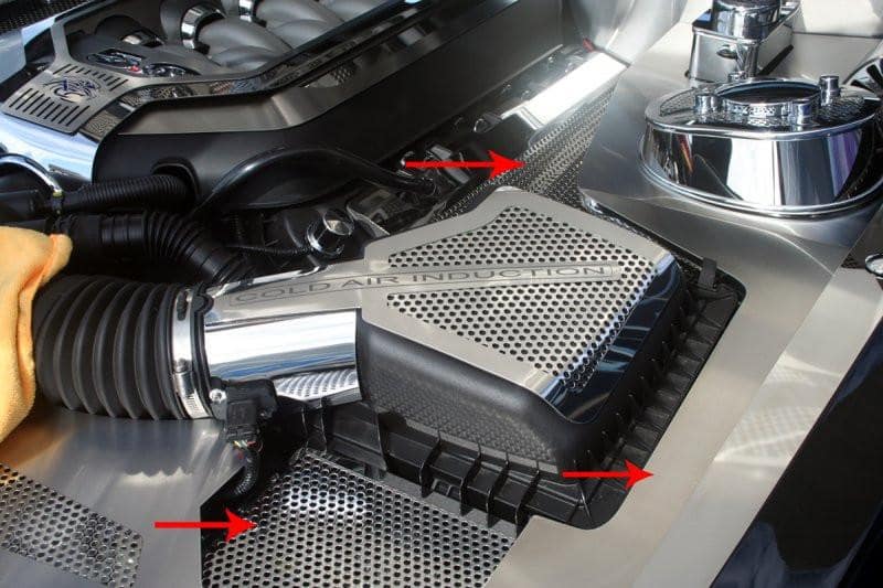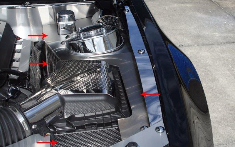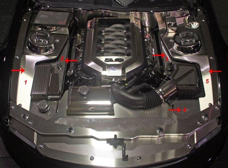 New Lower Price! Dress up your Mustang with our brushed stainless steel Fender Covers 5 piece trim kit. These trim pieces are designed to fit on the top of the inner fender and add a clean stylish look to your Mustang engine bay. Also available with Fender Covers LED Lighting Kit - 273038.