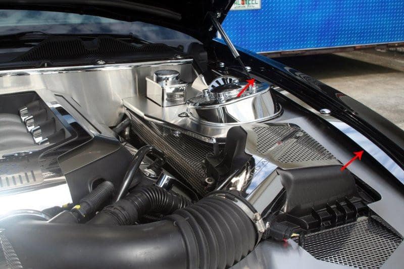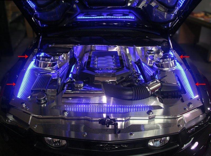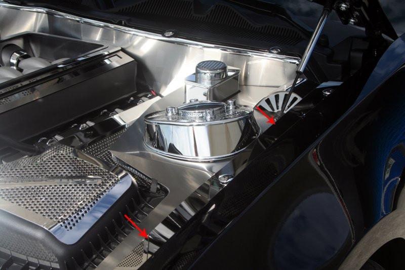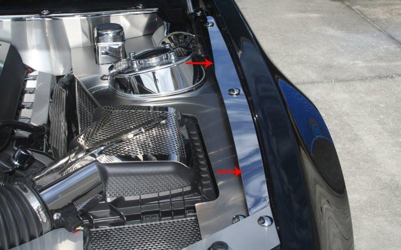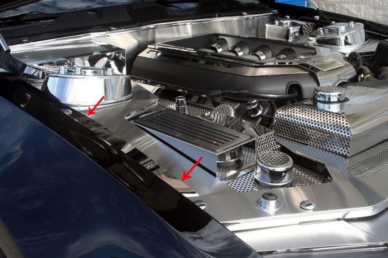 New Lower Price! Dress up your Mustang with our polished stainless steel Fender Top Caps. These Mustang accessories are designed to fit on the top of the inner fenders and add a custom show style to your Mustang engine bay. Our Mustang aftermarket engine dress accessories are designed with you in mind, all feature easy do-it-yourself installation and the results are a jaw-dropping custom style that will bring home the trophy. Also available with LED lighting, Illuminated Fender Top Caps - 273034.