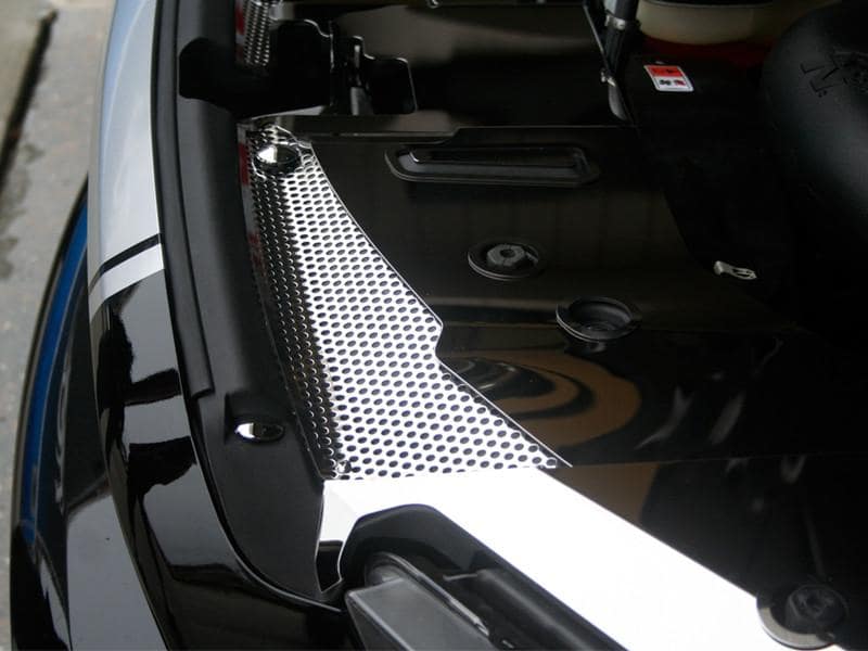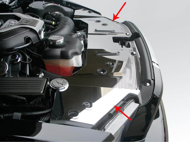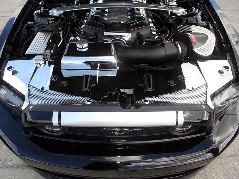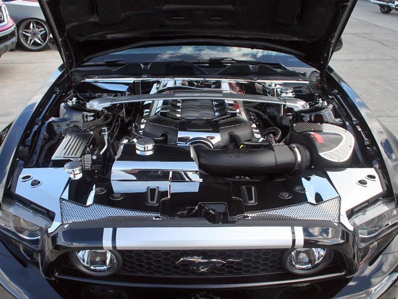 Dress up your Mustang with our Polished Stainless Steel Front Header Plate. This (11) piece trim is designed to fit on the stock header plate area and add a clean stylish look to your Mustang engine bay.
