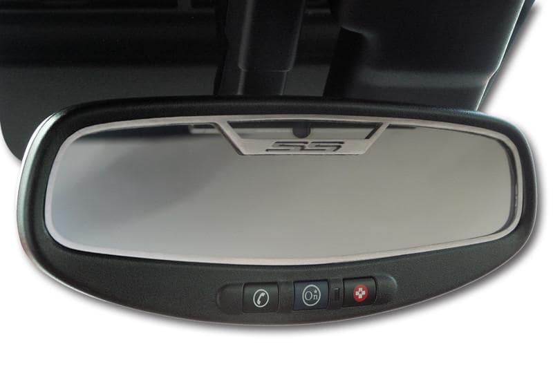 Dress up your Camaro with our brushed stainless steel SS Style Rear View Mirror Trim. This trim kit is designed to fit within the stock rear view oval mirror and add a clean stylish look to your Camaro interior.