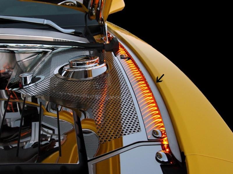Dress up your Camaro with our polished stainless steel Inner Fender Liner Kit with LED Illuminated. These trim pieces are designed to fit over the stock inner fenders and add a clean stylish look to your Camaro engine bay. Designed to work with an aftermarket hood.