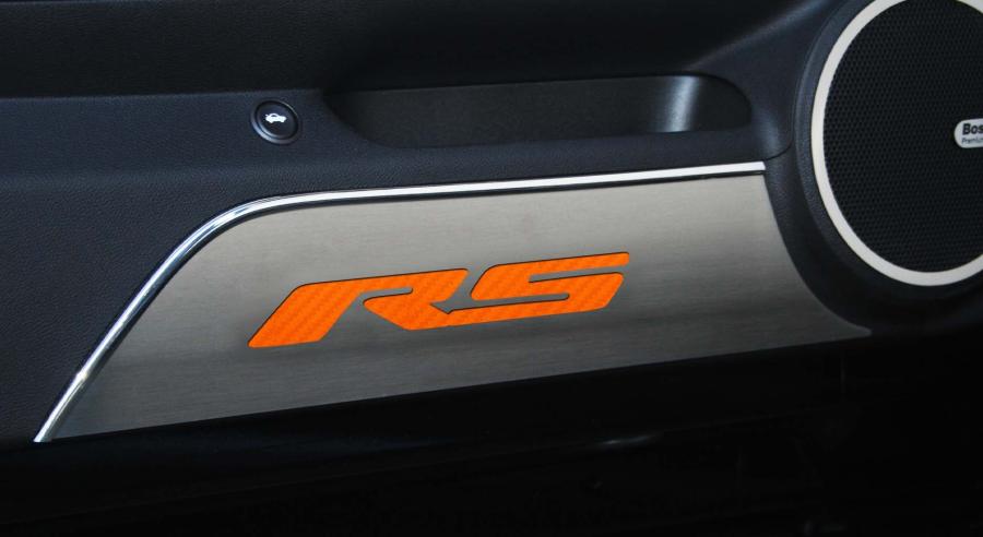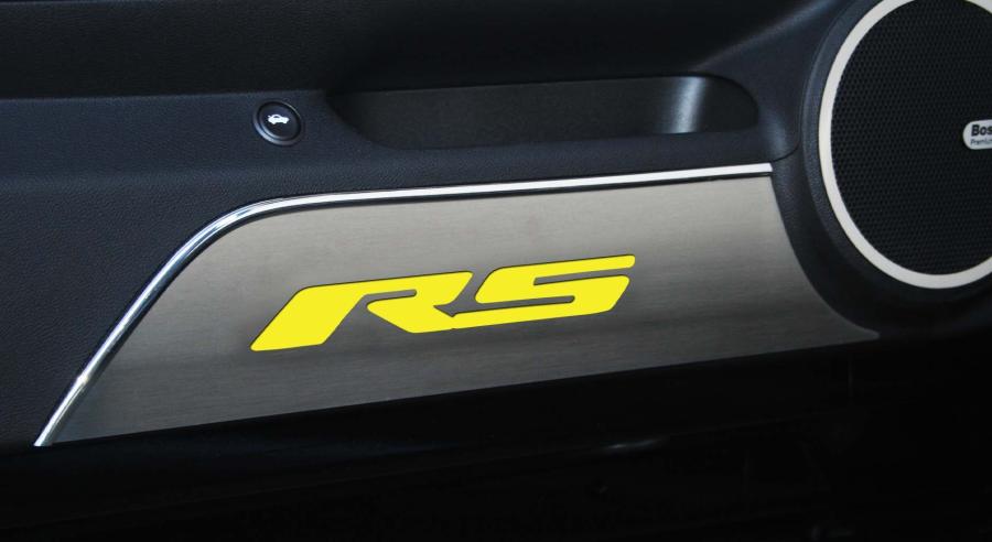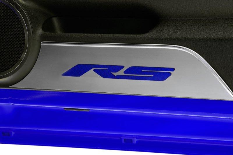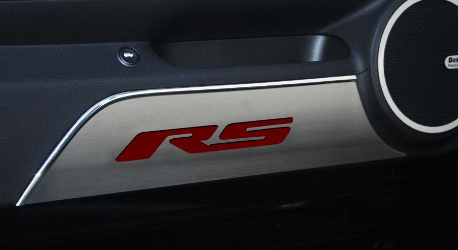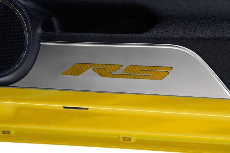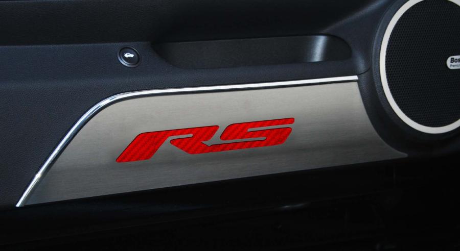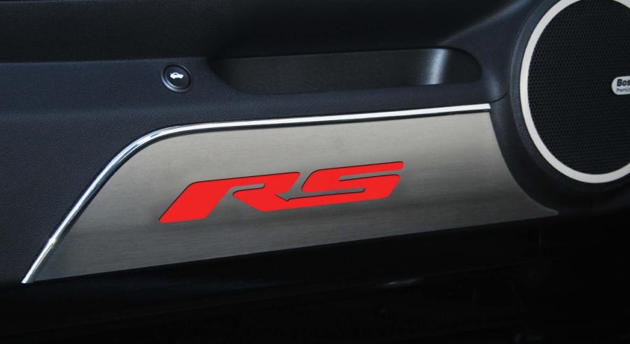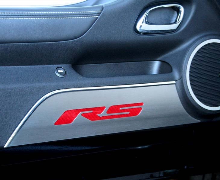 Dress up your Camaro with our brushed stainless steel Door Panel Kick Plates with "RS" Inlay. Choose a vinyl color inlay above for RS. These trim pieces are designed to fit on the door panel and add a clean stylish look to your Camaro interior. Also available in "SS" Version - 101016.