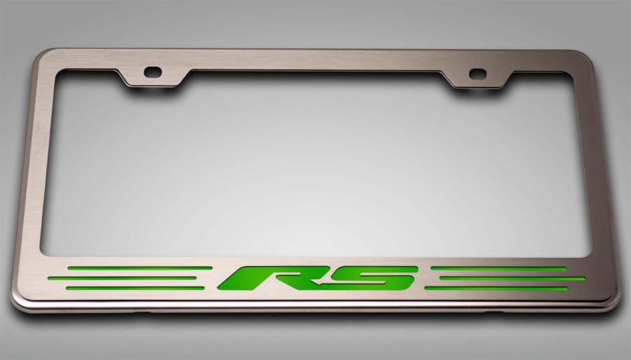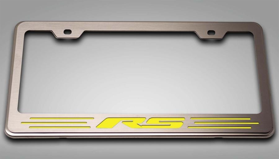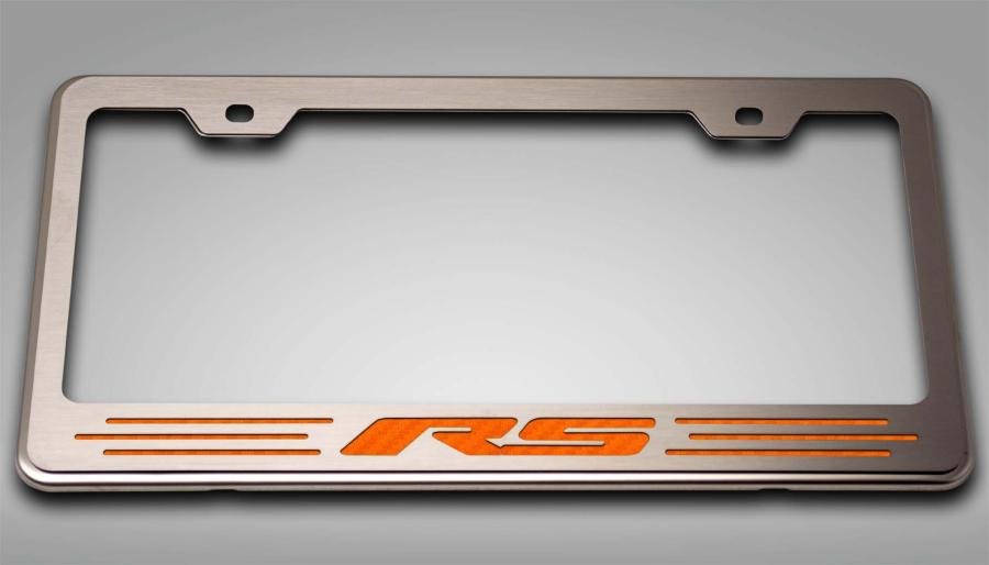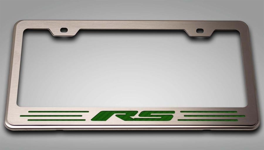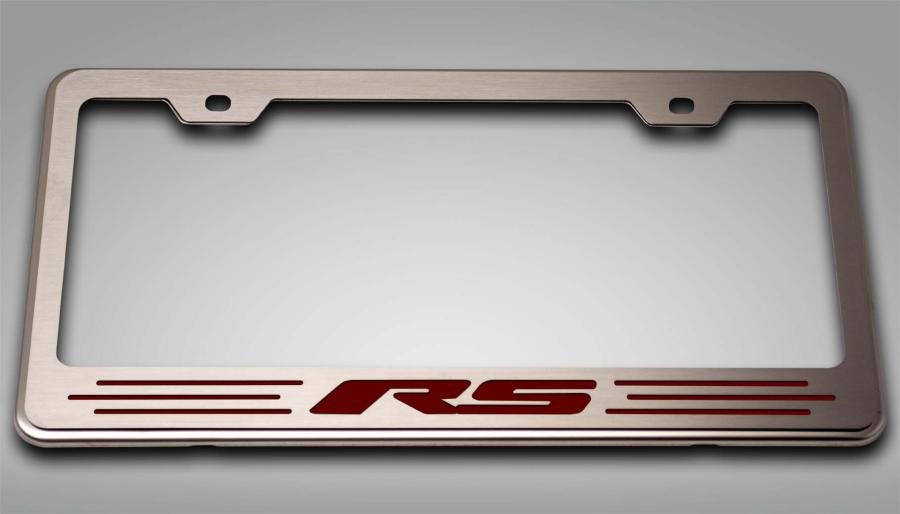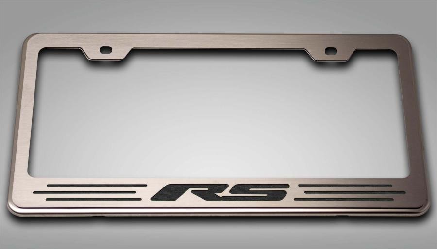 Made with Brushed Stainless Steel this high quality, hand made, frame features your choice of colored vinyl "RS" letters. Your Camaro is an investment, only install parts that add value and look amazing.