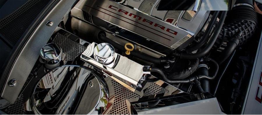 Enhance the look of your bland stock parts. Dress up your engine with our Chevrolet Camaro Coolant Tank Cover. Each piece is made from 100% stainless steel and all of our parts are laser cut to give you an exact fit each and every time you order. Choose a Polished or Brushed finish from the drop-down menu above.