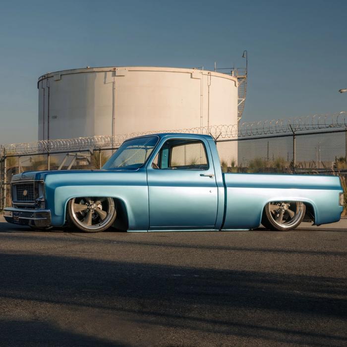 This 22x11 American Racing Classic Torq-Thrust II wheel features a 5 on 5 bolt pattern, for use on Chevrolet and GMC trucks, as well as select GM full size cars from the '60s through the '80s. This is a great option for Square Body C10 wheels. This VN215 Classic Torq-Thrust II wheel features a machined outer lip and textured gray spokes for an old school look. It features 6.71 inches of backspacing, which translates to a +18 offset. This offset allows fitment on many truck applications with drum brakes or aftermarket disc brakes, and can be used on the rear of some vehicles. Torq-Thrust wheels feature a one-piece cast aluminum construction, and features a conical lug nut seat, meaning you can use common acorn style lug nuts.