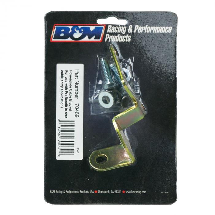 B&M Shift Cable Bracket for GM Powerglide transmissions with a B&M Street Bandit and Pro Bandit shifters (also works with Composite X shifter) with a rear exit shift cable.