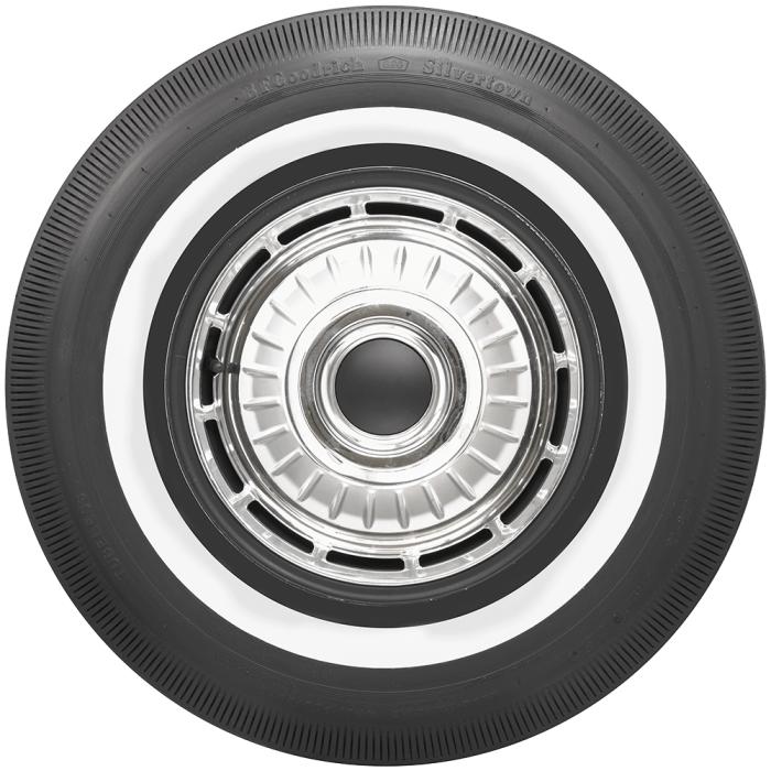 This product features a genuine narrow whitewall sidewall style. This means that the bright white rubber is added directly to the tire sidewall during initial construction of the carcass, resulting in a truly integrated, high-quality product after vulcanization. When we reference "narrow whitewall" tires, we typically mean a whitewall that measures less than two inches, but it can also mean a whitewall that does not reach all the way into the bead. Narrow whitewall tires are popular for many cars built in 1960's all the way into the 1990's.