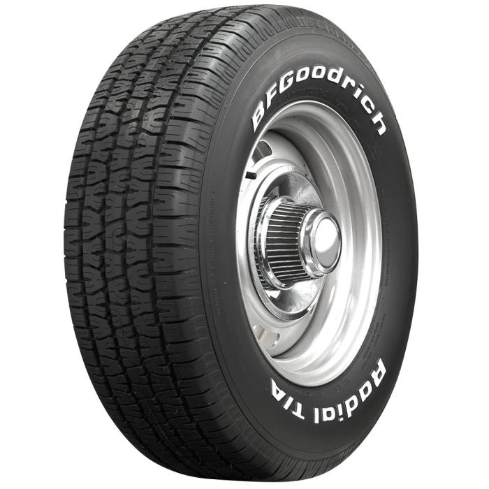 BFGoodrich Radial T/A tires are perfect for muscle cars and classics that call for a raised white letter sidewall. With the legendary V-Bloc tread design and S (112 MPH) speed rating, they are built to perform. DOT and ECE (European Union) approved. With 40 years of heritage, the BFGoodrich Radial TA product line earns the title of the ultimate muscle car tire. We have thousands of Radial T/A tires on hand, so you can get your tires quick, and get your muscle car back on the road, where it belongs! Please note that dimensions listed tread width, section width and overall diameter are non-scientific and based on an inflated tire, mounted on a wheel. Dimensions may vary due to rim width and inflation pressure.