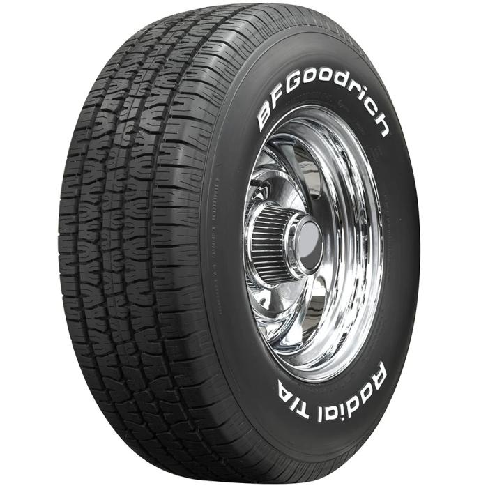 BFGoodrich Radial T/A tires are perfect for muscle cars and classics that call for a raised white letter sidewall. With the legendary V-Bloc tread design and S (112 MPH) speed rating, they are built to perform. DOT and ECE (European Union) approved. With 40 years of heritage, the BFGoodrich Radial TA product line earns the title of the ultimate muscle car tire. We have thousands of Radial T/A tires on hand, so you can get your tires quick, and get your muscle car back on the road, where it belongs! Please note that dimensions listed tread width, section width and overall diameter are non-scientific and based on an inflated tire, mounted on a wheel. Dimensions may vary due to rim width and inflation pressure.