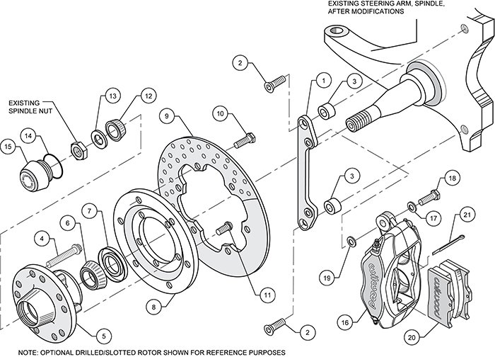 | Buick | Estate Wagon | 1980 | KIT,DRAG,FRONT,CAMARO 79-81,MD DISC SPINDLE,DRILLED,ANO; RTR:10.75-IN DIA, DRILLED STEEL ROTOR, DRILLED; CLPR:FORGED DYNALITE, 4-PISTON, TYPE III ANO Front kits fit 11" rotor spindles only. Requires modifications to original spindle Kit may fit some 14" wheels. Check wheel clearance diagram in kit installation instructions before purchase. Universal Flexline kits available: 220-7056 (14"), 220-7699 (16") or 220-8307 (18"). Choose correct length for your application. Universal Parking Brake cable kit, may require modifications to cable or vehicle to install. with OE 11" Rotor Spindles |