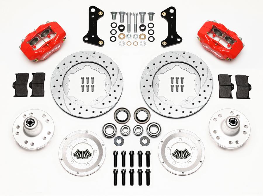 Wilwood's new limited offset FDL Pro-Series Front Hub Kits for GM 1967-1969 F-Body and 1964-1974 A-Body vehicles offer disc brake upgrade solutions for both OEM Disc & Drum spindles. We have completely redesigned our Pro Series line of brake kits using a larger 11" rotor and new forged aluminum hubs with the express purpose of maintaining the factory wheel position. This new kit widens the track by only +.19" from original drum brake position or narrows by -.31" from the original disc brake rotor assembly. Based on the venerable forged billet Dynalite caliper, these versatile kits are easily optioned to suit the braking requirements and style preferences for a daily driver, serious competition, or the most discriminating show enthusiast. Most vehicle applications require no modifications for installation, and provide plenty of clearance inside popular 15" wheels. FDL Pro-Series kits can be used with either manual or power boost master cylinders. Kits come complete with calipers, rotors, hub assembly, brackets and hardware. Installation requires purchase of additional brake lines shown below.