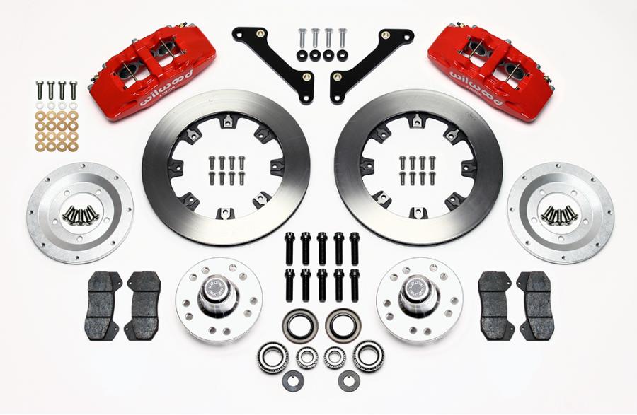 DynaPro 6 forged billet calipers are combined with 12.19” diameter rotors for this group of traditional non-ABS spindles on American muscle cars and vintage rods. The enhanced brake capacity and pad performance of the six piston calipers provide an intermediate level alternative to the bigger six piston kits. These kits compliment wheel, tire, and suspension upgrades on all types of custom show and high performance street / strip machines. A full range of caliper finishes and rotor designs enable the builder to personalize the style and optimize the brake performance for each individual application.