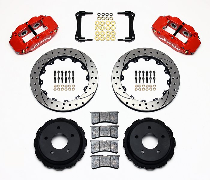 Forged Narrow Superlite 4R four piston calipers are combined with BP-10 compound pads and 13”-14” rotors in this group of big brake kits for custom high performance street and show machines. This group of specialized kits for cars, trucks, and SUV’s retain full use of the OE parking brake, master cylinder output, and ABS where used. FNSL4R rear kits provide complimentary style and performance with 13” and larger front brake upgrades in conjunction with wheel, tire, and suspension upgrades. Optional caliper finishes and rotor designs enable the builder to match style and performance on all applications.