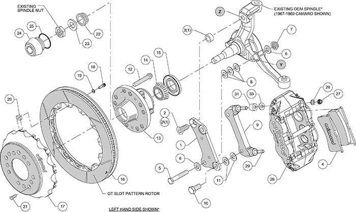 | Oldsmobile | F85 | 1967 - 1969 | KIT,FRONT,CAMARO/NOVA,67-72,FNSL6R DYNAMIC,14.00 ROTOR,ANO; RTR:14.00-IN DIA, GT 72 CURVED VANE, SLOTTED; CLPR:FORGED NARROW SUPERLITE 6R, 6-PISTON, TYPE III ANO 14" Rotor Universal Flexline kits available: 220-7056 (14"), 220-7699 (16") or 220-8307 (18"). Choose correct length for your application. Universal Parking Brake cable kit, may require modifications to cable or vehicle to install. with Disc Brake Spindle Attaches to Spindle |