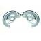 Superior Reproduction By Classic Headquarters Correct Sliver Cad Plating Correct Stamped GM Part Numbers 1381722 RH 1381723 LH Also Fits 1967-68 Firebird Replace your old, beat up, original disc brake backing plates with this superior quality reproduction. If you are doing a points judged car you will need the part numbers stamped just as original or face a points deduction. What is the first thing to get bent when you accidentally drop the jack without your front wheels on? You guessed it. NOTE: Cad Plating is an immersion process and parts coming out of this chemical bath may have slight runs or streaks. This is normal and should not be considered a defect.