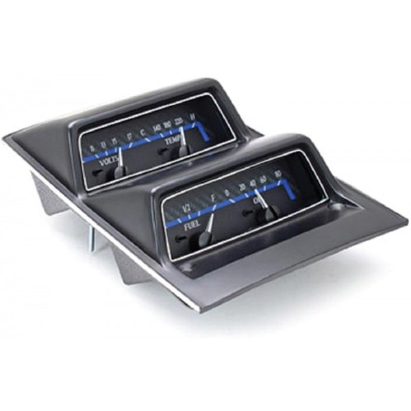 Beautiful Fully Programable Custom VHX Analog Dash & Console Gauge Kit Fits In Stock Gauge Pod With No Modifications Each Analog Display Also Features A Corresponding Digital Display In Unique Message Center Featured Gauges: Speedomemeter 0-160 MPH, Tachometer 0-8,000 RPM, Water Tempertaure 140-220 F, Oil Pressure 0-80 PSI, Voltmeter 8-17 Volts And Gas Gauge Message Center Also Includes Odomemeter w/Trip, Clock, Shift Indicator, Service Meter, 1/4 Mile Timer, Speed And RPM Recall Includes Turn Signal Indicators, High Beam, Parking Brake, And Cruise Control Includes Sensors For Oil Pressure, Water Temp, Mechanical To Electronic Speedometer Works With Any Stock Or Aftermarket Fuel Tank Sending Unit * Fully Compatible With All Engine Types Including LS Engines * Includes Easy To Wire ECM Control Unit Are you ready to take your 1968 Camaro to the next level? These gauges will bring your car into the 21st century and look better than any new car out there.