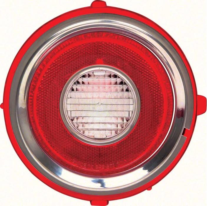 Reproduction of the original rear back-up lamp lens designed for use on 1972-73 Camaro Rally Sport models. Manufactured to correct OE specifications featuring correct "pillow" style back up lens. Each lens includes an original style pre-assembled outer chrome trim ring bezel. Features correct SAE and "Guide" lettering for an authentic appearance. Note: Designed for use on 2nd design 1972 models, and all 1973 models.