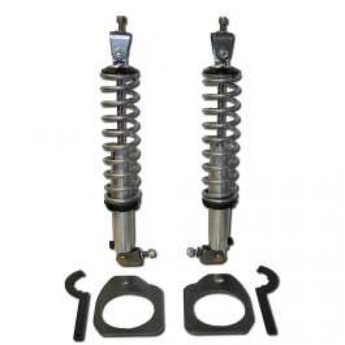 CNC Laser Cut Upper Mount Reinforcing Plates (Minor Welding Required) QA1 Twelve-Way Single Adjustable Forged Aluminum Shocks 150 lb. Springs Grade 8 Hardware Torrington Spring Bearings & Thrust Washers Kevlar/Teflon Shock Mount Bearings For Years Of Bind-Free Operation Spanner Wrench Included For Easy Ride-Height Adjustments Coil-Over suspension will make your Camaro react faster to uneven pavement, grooved highways, or bumpy tracks. QA1's twelve-way adjustable shocks have a unique dial adjsutment for compression and rebound at the same time. This shock & spring assemblies ship (by ground) fully asembled. Just weld in the upper 1/4 reinforcing plates and you are ready to go.
