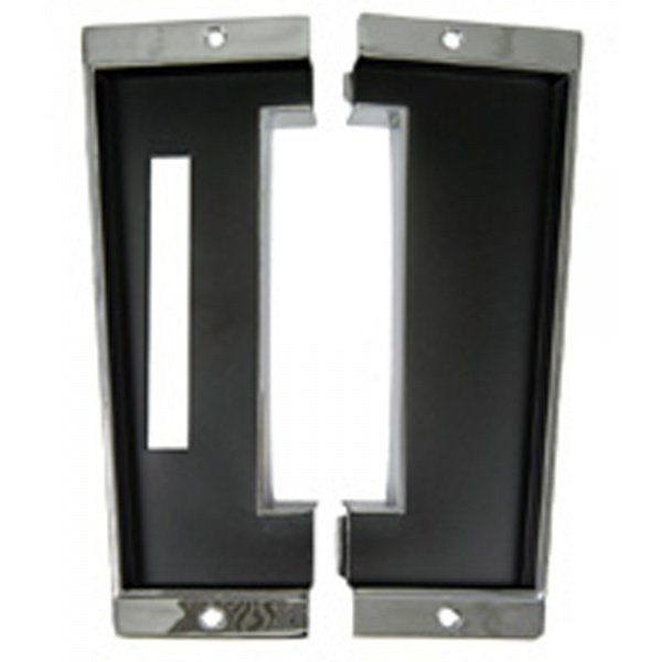 Reproduction of original two piece console shift plate. Hard diecast chrome with black matte finish.