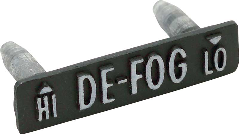 Reproduction of the original and rare optional dash defogger bezel for use on 1970-78 Camaro models. This zinc die-cast reproduction is manufactured to correct factory specifications and features a black and silver finish with Hi / De-Fog / Lo markings in the correct color and font. Installs on the passenger side of the dash instrument panel below the rear defroster switch as original. Includes mounting nuts for installation.