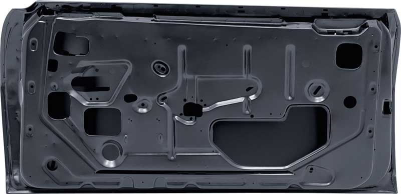 Quality reproduction of the original complete door shell assembly, accurately reproduced to match the factory design for a full replacement. Each door shell is manufactured in stamped steel to exact specifications and features the correct contours for an authentic appearance and proper fit. The assembly includes the inner structure, door frame, and outer door skin. Finished in black EDP coating for superior rust and corrosion resistance. This is the ideal replacement when repairing or replacing only the outer door skin is not sufficient. Simply transfer components from the original door to the new shell.
