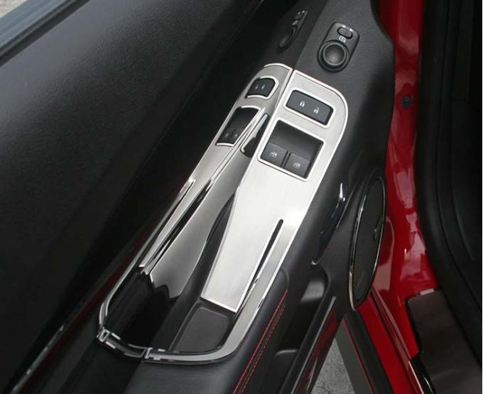 Dress up your Camaro with our brushed & polished stainless steel Door Handle Pull / Switch Deluxe Trim Plate. These Camaro accessories are designed to fit over the door pull and window switches and add a clean stylish look to your Camaro interior.