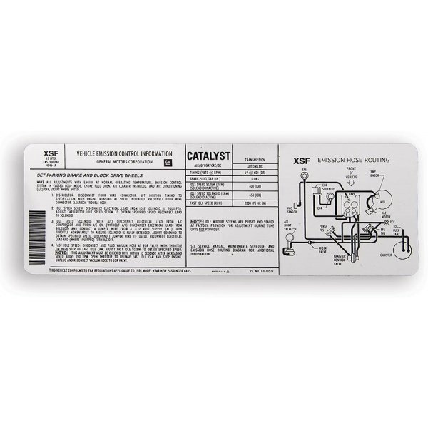 Camaro Emission Decal, Automatic Transmission, 5.0L, 1984