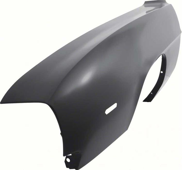 Reproduction of the original front fender designed for use on 1969 Camaro RS models (with concealed headlamp option). This fender is an excellent replacement for your rusted or damaged factory original. Manufactured in high grade stamped steel replicating the original GM fender in fit and appearance. Will install correctly and includes the front fender extension. Features a black electrophoretically deposited coating (EDP, or E-coat) for superior long-term corrosion protection. Fender is ready to be prepped, primed and painted without stripping.