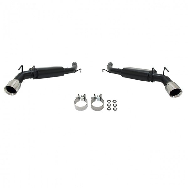 Get your 2014 Camaro hardtop or convertible sounding right with Flowmaster's new Force II Axle Back Exhaust system. Flowmaster's bolt-on Force II Axle-back system for the new 2014 Camaro SS with 6.2L V8 engine features specially tuned resonator/mufflers that provide a moderately aggressive exterior sound level, with a very mild interior sound level. The system includes heavy duty band-style clamps for a secure, leak free installation and is constructed with durable 409S Stainless Steel and finished off with 4.00-inch polished tips. Because its stainless steel, the system is covered by Flowmaster's amazing Lifetime Limited Warranty. This clamp-on installation requires cutting of OEM system, but fits both Hard Top AND Convertible models. Note: This system does NOT fit vehicles equipped with Dual Mode Exhaust option.