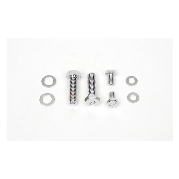 Dress up your Camaro! Officially licensed GM Product from Gardner-Westcott. Has the Chevy Bow-Tie emblem stamped onto the head of each bolt. High polished heavy chrome plated. Set includes washers.