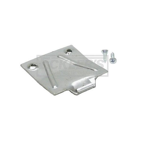Stamped steel reproduction catch plate. Plated silver cad. Includes two mounting screws (not shown)