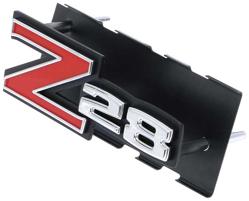 OER® reproduction of the original "Z28" front grille emblem originally installed on all 1970-73 Camaro Z28 models. Each emblem is manufactured in die-cast zinc replicating the original emblem in design and appearance. Emblem includes the correct color paint scheme meticiously masked with chrome accents a s original. Mounting hardware included. Note: The emblem back plate retainer may need adjusting on later 2nd design versions.