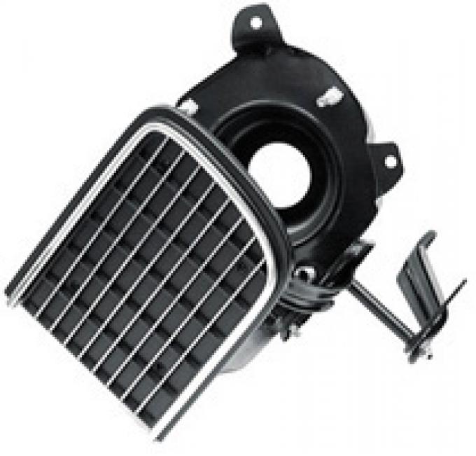 Assembled with quality in the USA. The most accurate and complete RS headlamp assembly available. Headlamp housing, hinge plate, door backing plate, outer black technically correct chrome ribbed headlamp door cover with trim molding attached with accurate reproduction rivets and door stop cushions, bellcrank, lower bellcrank support bracket, over center mechanism with spring, sealed beam adjusting screws, all bushings and hardware. Completely assembled. LH (driver) side only.