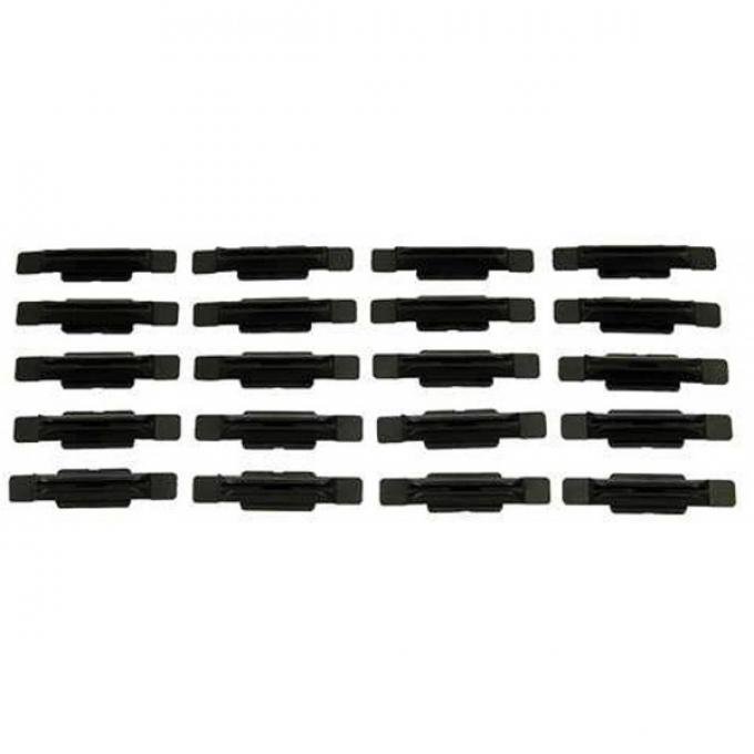 Made Exact As Original Replaces Cracked Or Missing Clips Set Of 20 Pieces For 1970-1973 Camaro Models Replaces GM #9866994 Your original headliner bow clips can become hardened, missing, or cracked due to wear and tear in your 1970, 1971, 1972, or 1973 Camaro interior. This sit provies the correct amount for one F-Body roof. The clips easily slide into the headliner bows, and then into the roof slot as your originals.