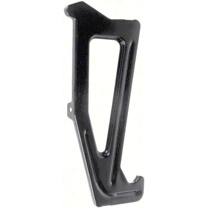 Reproduction hood lock catch support for 1969 Camaro models. Manufactured in stamped steel to original factory configuration for an authentic appearance and fit. This support is located between the grill and radiator support. The hood latch assembly bolts to the upper portion of the support and is stabilized by the hood lock catch support. This support also helps strengthen the entire front section of the vehicle. Features a black EDP coating for rust prevention.
