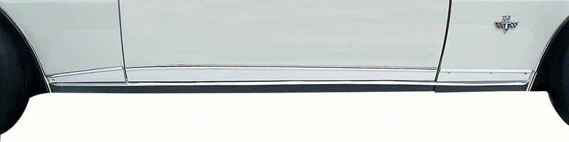 Supurb reproduction of the original lower side moldings designed for use with 1967 Rally Sport Camaros. These high quality reproductions are manufactured in quality polished stamped aluminum replicating the original GM moldings exactly. Each molding is approximately 3" wide. Includes fender, door and quarter panel moldings for RH and LH sides. Refer to part number # K4088 for original style installation clip kit available separately.