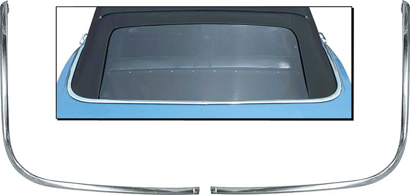 This product is manufactured in two stamped stainless steel chrome moldings. Exact dimensions are essential in this reproduction and each molding is produced to factory specifications. Once installed, the moldings serve to hold the top boot when the convertible top is down. The top boot clips snap directly onto the well molding and help to retain the top boot.