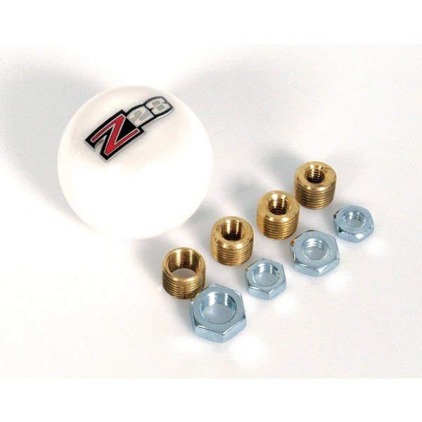 This shift knob is made of high impact polymer resin, specifically formulated for the automobile industry, not to develop stress cracks with aging. The master insert in the shift knob exceeds the auto industries specification of 200 ft. lbs. static pull and 20 ft. lbs. twist torque test. Each knob is polished to a high gloss finish. Master insert is 16mm X 1.5 with reducers to accept 5/16"-18, 3/8"-16, 3/8"-24, and 1/2"-20 threads.