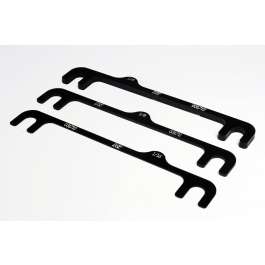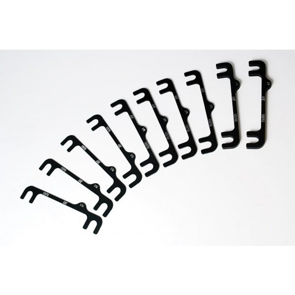 Machined From 6061 Aluminum 4) 1/16 Shims 4) 1/8 Shims 2) 1/4 Shims Anodized Black Detroit Speed's Camber Shim Track Kit allows you to adjust camber easily with our one-piece slotted camber shims. Each shim is machined from 6061 aluminum and is then anodized black for durability. The track kit includes four 1/16 shims, four 1/8 shims, and two 1/4 shims to fit your driving needs.