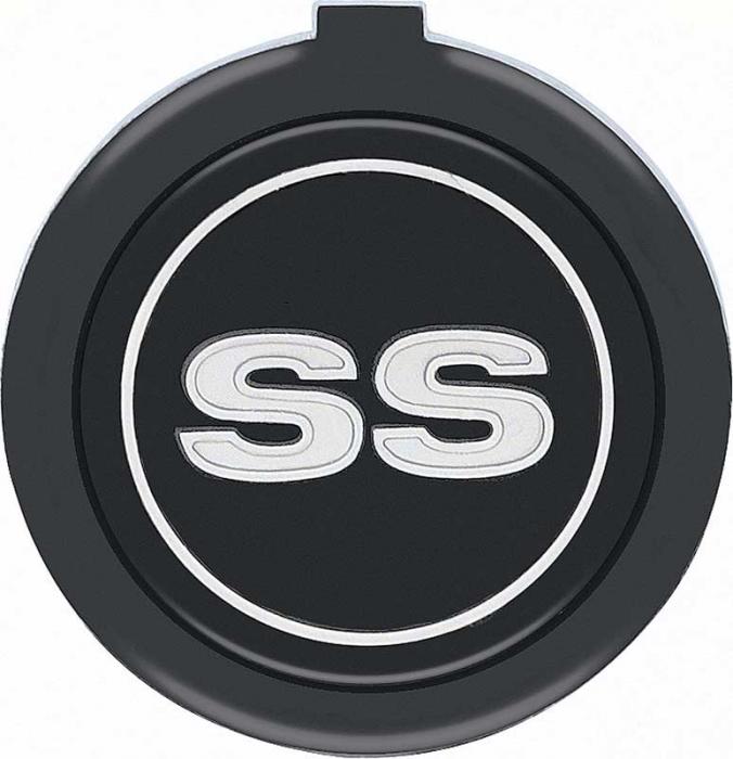 OER® reproduction of the original SS horn cap emblem designed for use on 1971-81 Camaro Super Sport models. This emblem features the classic "SS" letter logo on a black background with silver border. This emblem is manufactured to exact specifications and replaces the original exactly. Refer to part number # 329738 for horn button cap. Note: This emblem was also installed on door panels for Camaros equipped with power windows. Inserts into the door panel bezel. Refer to part number 3879552 for door panel bezel.
